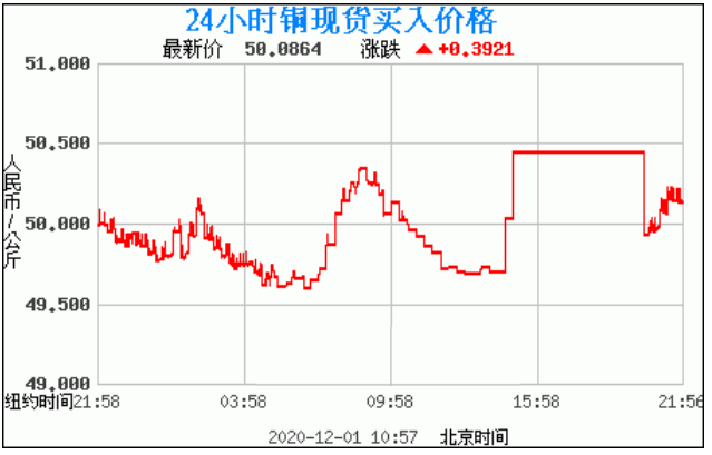 铜价格走势图今日最新铜价行情(2020年12月1日) 今日最新铜价:50.0864涨跌:0.3921 备注:以上铜价格仅供参考,请以官方价格为准。