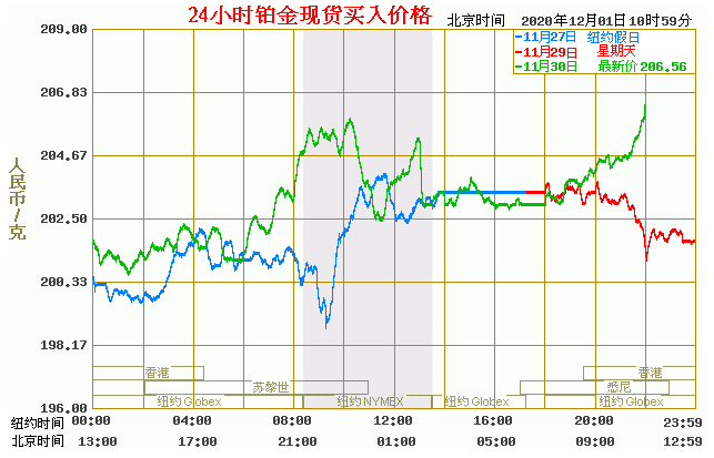 铂金价格走势图今日最新铂金行情(2020年12月1日) 今日最新铂金行情:206.56 备注:以上铂金价格仅供参考,请以官方价格为准。