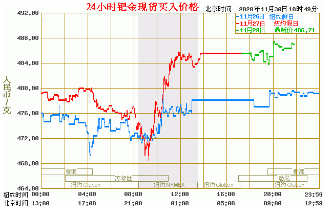 钯金价格走势图今日最新钯金行情(2020年11月30日) 今日最新钯金行情:486.71 备注:以上钯金价格仅供参考,请以官方价格为准。