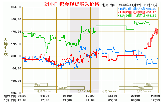 钯金价格走势图今日最新钯金行情(2020年11月27日) 今日最新钯金行情:478.39 备注:以上钯金价格仅供参考,请以官方价格为准。