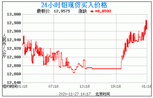 铝锭价格走势图今日最新铝锭行情(2020年11月27日) 今日最新铝锭行情:12.9575 备注:以上铝锭价格仅供参考,请以官方价格为准。