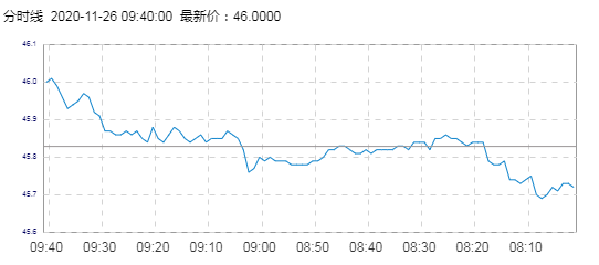 WTI原油价格实时(2020年11月26日) 名称 最新价 涨跌 涨跌幅% 开盘价 昨收价 最高价 最低价 WTI 46.00