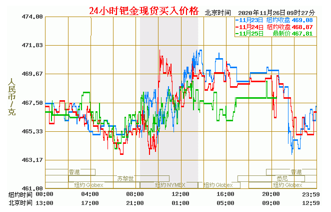 钯金价格走势图今日最新钯金行情(2020年11月26日) 今日最新钯金行情:467.81 备注:以上钯金价格仅供参考,请以官方价格为准。