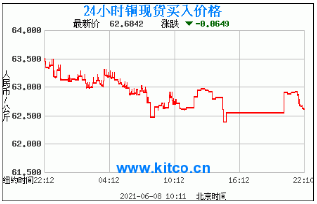铜价格走势图今日最新铜价行情(2021年6月8日) 今日最新铜价:62.6842涨跌:-0.0649 备注:以上铜价格仅供参考,请以官方价格为准。
