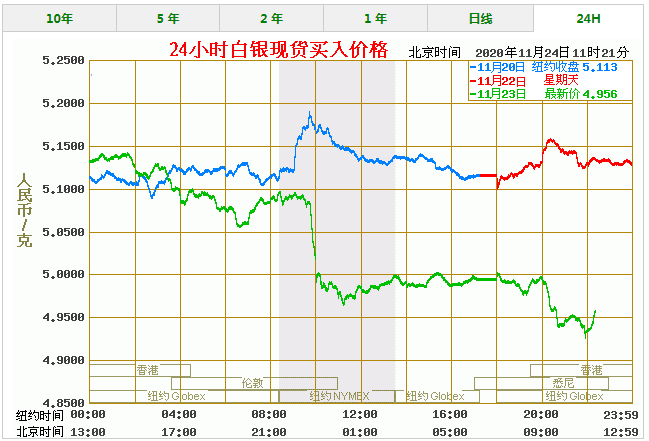 纸白银价格走势图实时(2020年11月24日) 名称 最新价 最高价 最低价 买入价 卖出价 纸白银(美元) 23.33 23.57