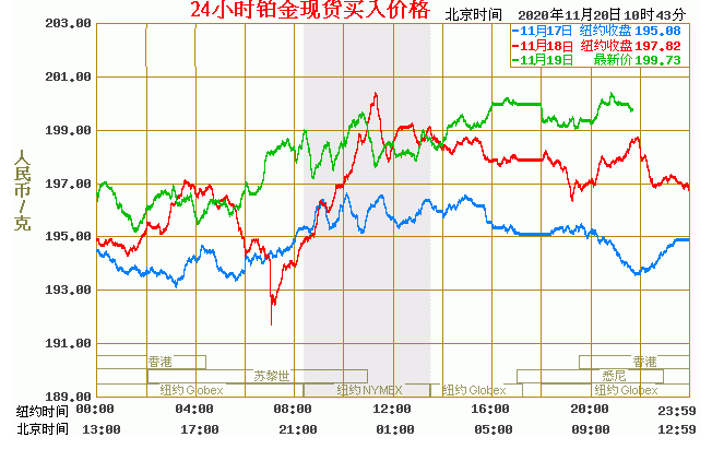 铂金价格走势图今日最新铂金行情(2020年11月20日) 今日最新铂金行情:199.73 备注:以上铂金价格仅供参考,请以官方价格为准。
