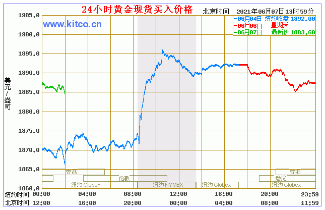 (2021年6月7日)国际黄金价格表 名称 最新价 涨跌 涨跌幅% 买价 卖价 开盘价 昨收价 最高价 最低价