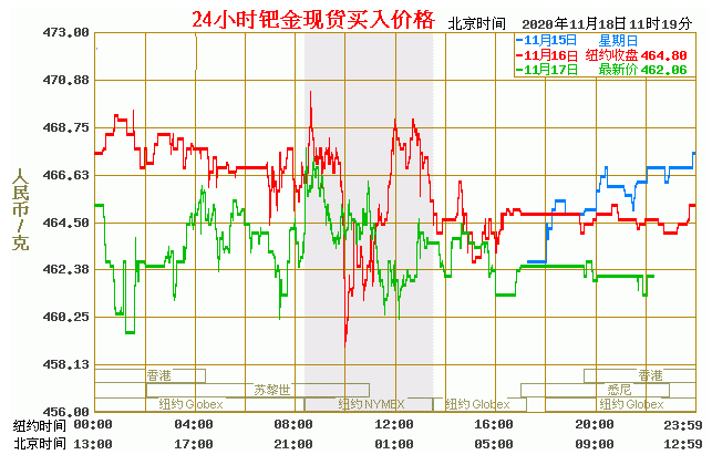 钯金价格走势图今日最新钯金行情(2020年11月18日) 今日最新钯金行情:462.06 备注:以上钯金价格仅供参考,请以官方价格为准。
