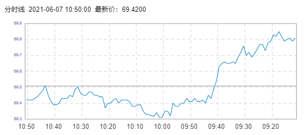 国际原油价格实时走势图(2021年6月7日) WTI原油走势图 布伦特原油走势图