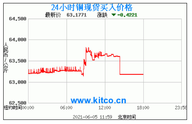 铜价格走势图今日最新铜价行情(2021年6月7日) 今日最新铜价:63.1771涨跌:-0.4221 备注:以上铜价格仅供参考,请以官方价格为准。
