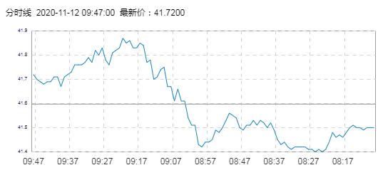 WTI原油价格实时(2020年11月12日) 名称 最新价 涨跌 涨跌幅% 开盘价 昨收价 最高价 最低价 WTI 41.75