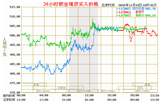 钯金价格走势图今日最新钯金行情(2020年11月10日) 今日最新钯金行情:504.19 备注:以上钯金价格仅供参考,请以官方价格为准。