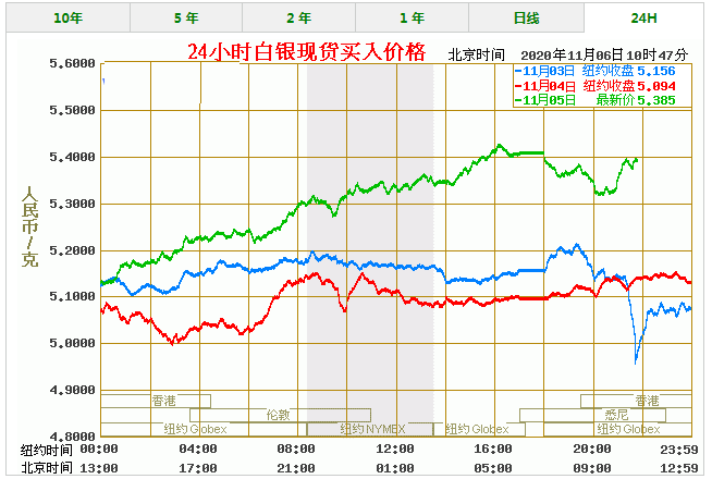 纸白银价格走势图实时(2020年11月6日) 名称 最新价 最高价 最低价 买入价 卖出价 纸白银(美元) 25.24 25.40