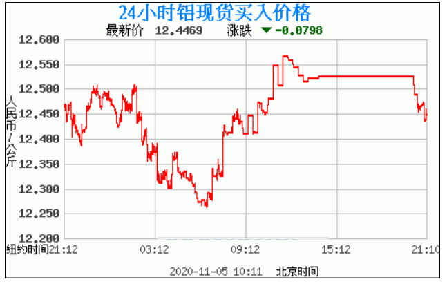 铝锭价格走势图今日最新铝锭行情(2020年11月5日) 今日最新铝锭行情:12.4469 备注:以上铝锭价格仅供参考,请以官方价格为准。
