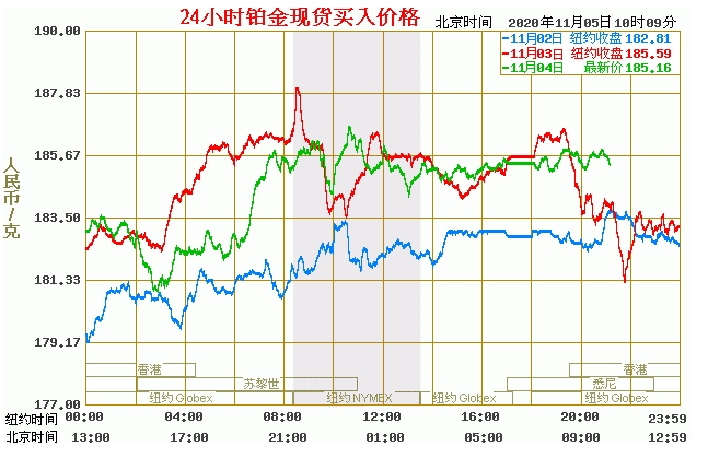 铂金价格走势图今日最新铂金行情(2020年11月5日) 今日最新铂金行情:185.16 备注:以上铂金价格仅供参考,请以官方价格为准。