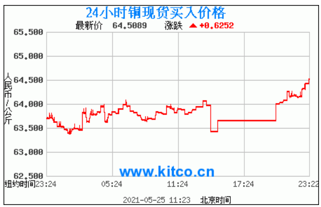 铜价格走势图今日最新铜价行情(2021年5月25日) 今日最新铜价:64.5089涨跌:0.6252 备注:以上铜价格仅供参考,请以官方价格为准。
