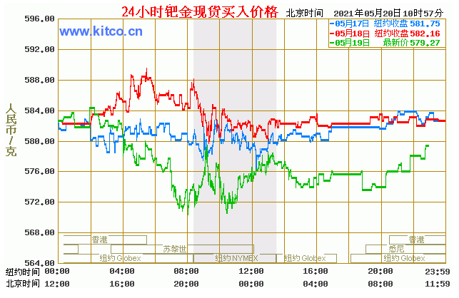 钯金价格走势图今日最新钯金行情(2021年5月20日) 今日最新钯金行情:579.27 备注:以上钯金价格仅供参考,请以官方价格为准。