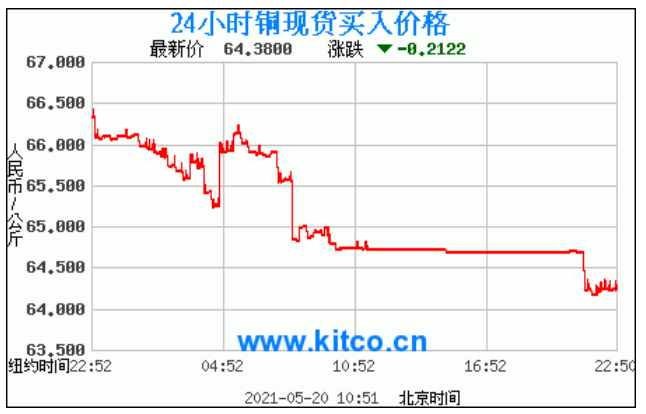 铜价格走势图今日最新铜价行情(2021年5月20日) 今日最新铜价:64.3800涨跌:-0.2122 备注:以上铜价格仅供参考,请以官方价格为准。