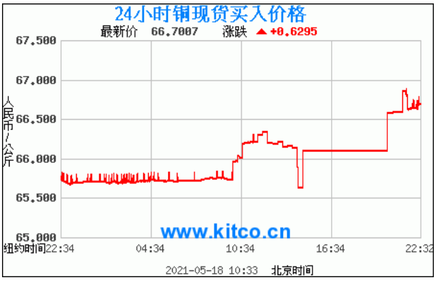 铜价格走势图今日最新铜价行情(2021年5月18日) 今日最新铜价:66.7007涨跌:0.6295 备注:以上铜价格仅供参考,请以官方价格为准。