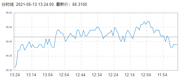 WTI原油价格实时(2021年5月13日) 名称 最新价 涨跌 涨跌幅% 开盘价 昨收价 最高价 最低价 WTI 65.22