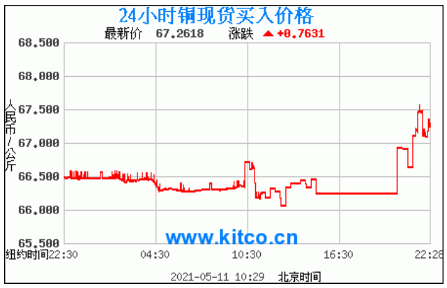 铜价格走势图今日最新铜价行情(2021年5月11日) 今日最新铜价:67.2618涨跌:0.7631 备注:以上铜价格仅供参考,请以官方价格为准。