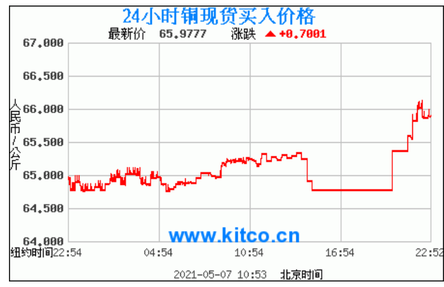 铜价格走势图今日最新铜价行情(2021年5月7日) 今日最新铜价:65.9777涨跌:0.7001 备注:以上铜价格仅供参考,请以官方价格为准。