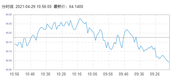 WTI原油价格实时(2021年4月29日) 名称 最新价 涨跌 涨跌幅% 开盘价 昨收价 最高价 最低价 WTI 64.14