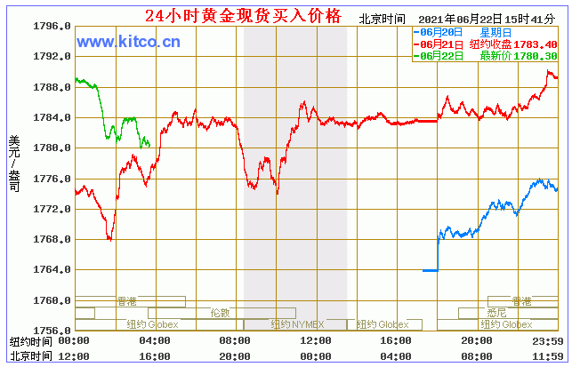 周二(6月22日),国际金价基本持稳,尽管美元指数重新上涨,但市场参与者等待美联储主席鲍威尔即将向国会发表的证词。金价隔夜因美元回落而上涨。 今日黄金价格走势图(2021年6月22日)