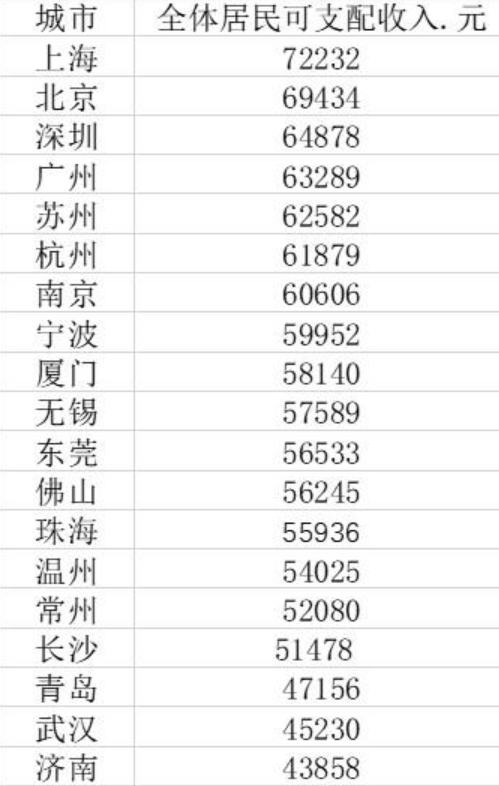 一般来说,经济发达的大城市,就业机会较多,工资水平较高。那我国各大城市收入水平究竟如何? 第一财经记者统计梳理了40个重点城市(包括23个GD万亿级城市以及其他一二线城市、省会城市,哈尔滨、长春等个别重点城市数据暂未发布,在此未纳入统计)的全体居民人均可支配收入后统计发现,目前共有7个城市人均收入超