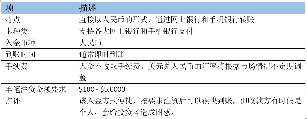 “易支付”入金体验 入金方式之易支付详细图解 百利好环球目前只提供三种入金方式:易支付(人民币转账汇款)存款650-50000人民币、cotra四通汇国际电汇:存款上下限100-100,000美元、cotra四通汇:存款下上限100-100,000美元。百利好环球不收取手续费,我们在这里提供人民币转账汇款的详细流程,便于