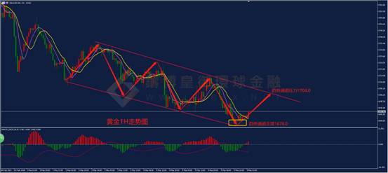 黄金上日开盘1703.40,最高1714.07,最低1676.88,收盘1682.73. 黄金上日收阴线。 从技术分析的角度,黄金价格上日继续下行表现,持续在天图级别布林带中轨与下轨之间运行,汇价持续在布林带下轨运行,动能略显不足。天图级别布林带向下开口,布林带中轨向下偏折。 天图级别ACD方面,双线高位死叉,动能柱下破0轴,线柱