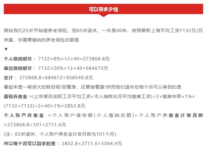 在上海交15年养老保险,按照上海平均工资7132元每月来算,65岁退休,个人账户养老金计发月数为101个月,每个月可以领2086.6元。上海职工领取养老金,要达到国家、本市规定的退休年龄男性年满60周岁,女性从事管理和技术工作年满55周岁、直接从事生产服务工作年满50周岁。 在上海交15年养老保险,退休后
