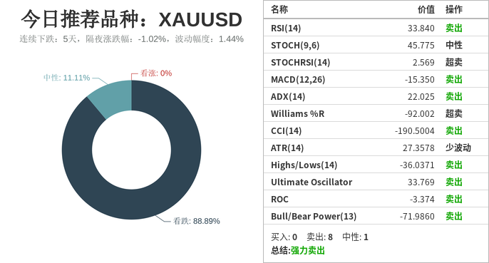 日内推荐交易品种及相关策略: 国际黄金(下跌:5天,隔夜涨跌幅:-1.02%,波动幅度:1.44%)。 根据外汇相关性实时追踪,XAUUD在30分钟周期下与部分货币的相关性排行如下图: 其中,XAUUD和UDCHF在该周期下相关系数达到-0.94,对投资者提出如下建议: 做多/空1标准手XAUUD的同时,做多/做空1标准手UDC