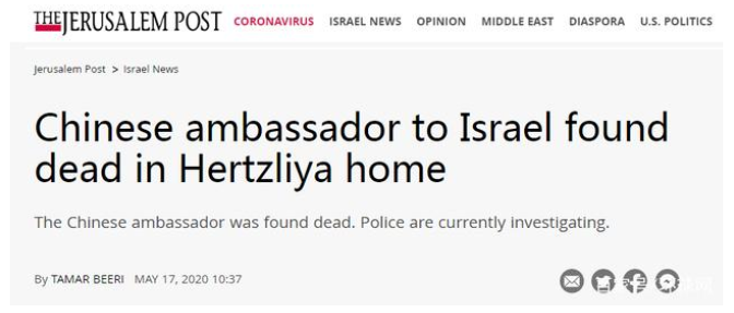 亚汇网讯,5月17日,据以色列《耶路撒冷邮报》、《以色列时报》等多家媒体发布消息,以色列外交部官员证实,中国驻以大使杜伟于当地时间17日早晨被发现死在其位于特拉维夫郊区赫兹利亚的官邸中。目前暂未看到中国驻以色列大使馆证实此事。据以色列当地媒体报道,当地警察目前正在就死因进行调查。 报道还称,中国驻