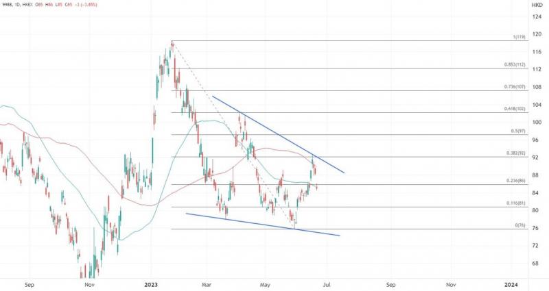 ATFX港股:央行下调LR提振有限,科技股走低拖累大市 ATFX港股:央行宣布下调6月贷款市场报价利率(LR),为时隔10个月来首次,但未能给股市带来提振,中午收盘跌逾300点报19609,科技指数午后跌幅扩大至2.8%,金融指数跌逾1%,唯独公用指数逆市上涨逾1%。 张勇将不再担任董事会主席兼首席执行官,由蔡崇信接替,阿