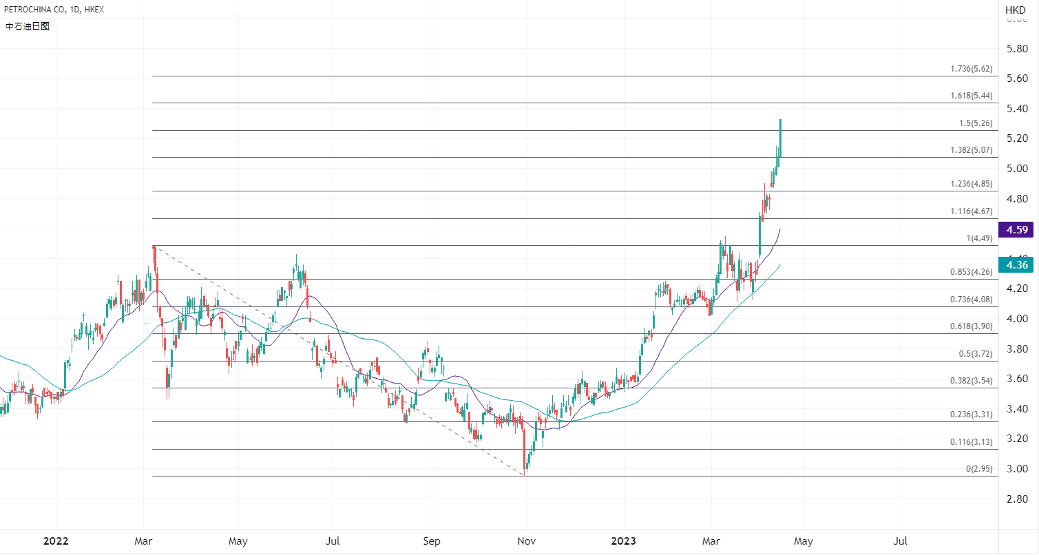 ATFX港股:商品资源股走强,「三桶油」创52周高位领涨 ATFX港股:今日港股恒指低开但高走,半日录得上涨110点,其中商品资源股整体造好,延续上周五的积极走势,其中「三桶油」在板块中领涨。 国际油价上周五窄幅震荡但维持近期高位,连续四周上涨。日内港股「三桶油」创52周高位,中石油(00857)午后升5.6%,中石