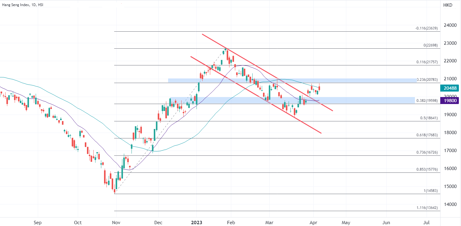 ATFX港股:恒生指数窄幅震荡两周,何时迎来突破? ATFX港股:四月份以来,股票市场一直缺乏持续热点来吸引资金流入。3月份硅谷银行的事件已经告一段落,四月初公布的美国非农就业报告乏善可陈,就连本周的美联储会议纪要也没能引起广泛的讨论。消息面如此清淡,恒生指数自然不会出现大波动。最近两周,恒生指数的最高价