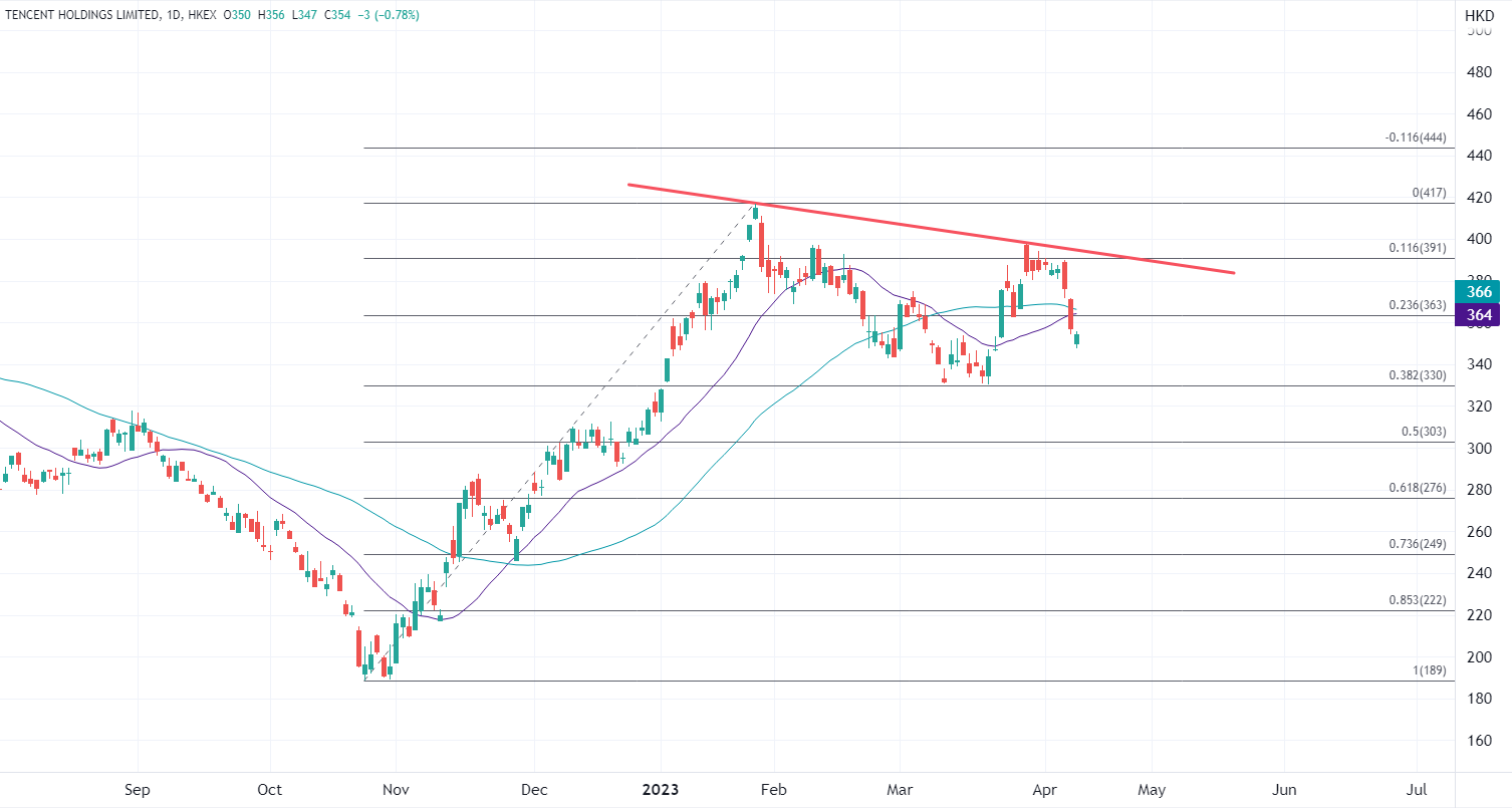 ATFX港股:长假复市后高开低走,消息面缺乏利好突显技术阻力 ATFX港股:港股在复活节假期回归后高开逾两百点,最高曾上涨近400点,小幅刷新逾一个月高位后回吐,大市半日沽空金额85.23亿港元。南下资金半日净流入24.69亿港元,大市成交额为754亿港元。 科技股普遍走跌导致大市承压,其中腾讯(00700)跌近3%,AI板块震