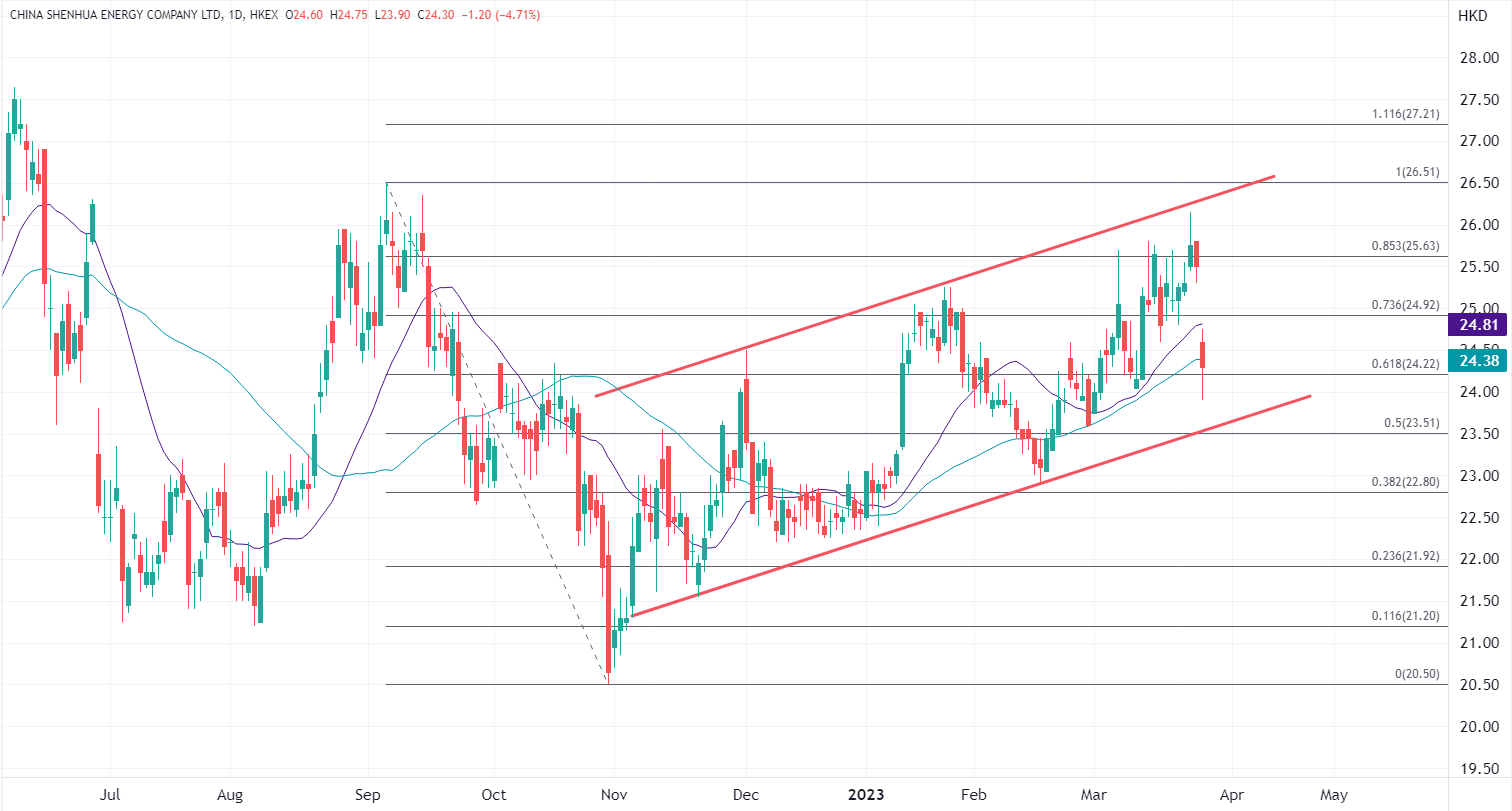 ATFX港股:中国神华豪气分红超500亿但股价却倒跌 ATFX港股:上周五公布业绩后,今早中国神华(01088)股价低开,港股股价盘中急跌逾5%,A股则跌逾4%,因为虽然业绩维持强劲,但派息无惊喜令部分投资者失望,且公司对2023年业绩指引没有带来惊喜。 据业绩披露,2022年中国神华实现营业收入3445亿元,同比增长2.6%;归