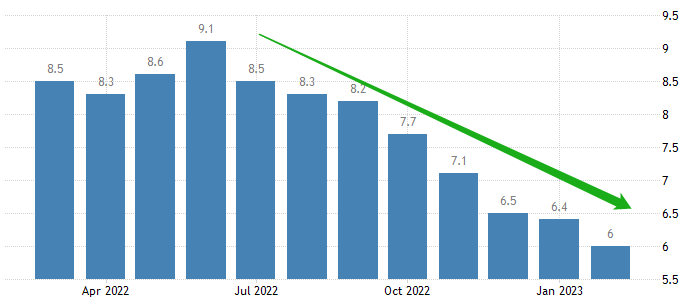 ATFX国际:美国CI如预期下降至6%,美联储加息理由进一步削弱 ATFX国际:3月14日,美国劳工部劳动统计局发布2月CI增速年率,前值为6.4%,预期值6.0%,公布值6.0%,公布值低于前值且符合预期。至此,美国通货膨胀率实现八月连降,高通胀危机基本缓解。市场将物价下降归功于美联储加息,认为不断提高的利率遏制了消费总