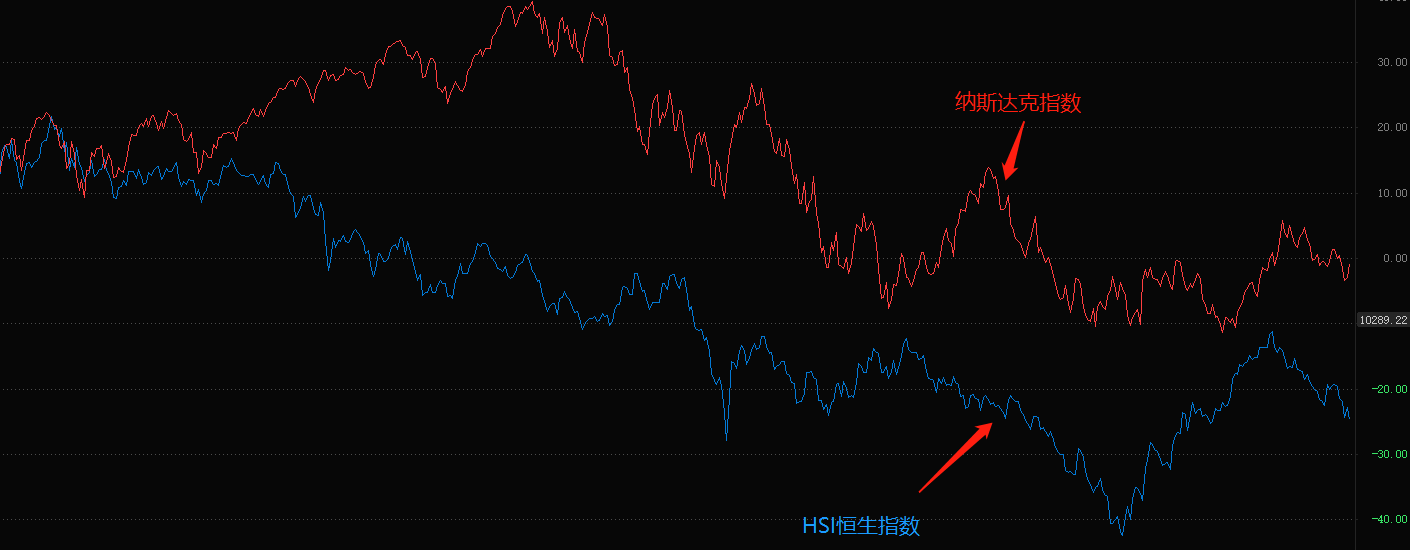 ATFX港股:恒生指数延续回调态势,止跌时机取决于美股表现 ATFX:恒生指数虽然短期遇阻回落,但中期上涨趋势不变,何时恢复趋势性上涨取决于美股现表现。从k线图叠加走势来看,恒生指数与纳斯达克指数共振性最强。纳斯达克指数的下跌开始于二月初,主要影响因素是美国二月份公布的靓丽非农就业报告。美联储加息会导致股