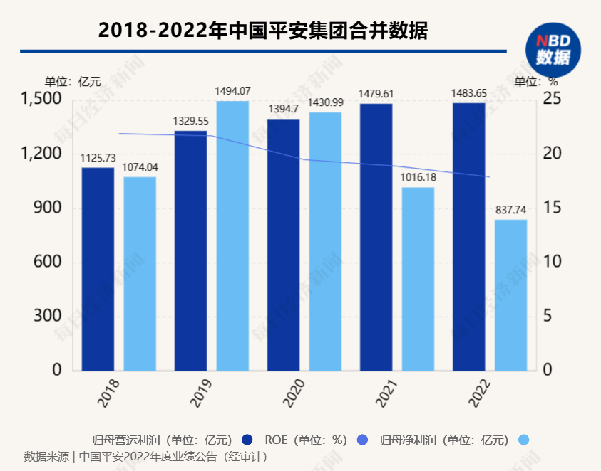 ATFX港股:2022年净利下滑近18%,平安业绩依然喜忧参半 ATFX港股:昨日(3月15日)中国平安(2318.HK)公布2022年业绩:报告期内实现归属于母公司股东的营运利润1483.65亿元,同比增长0.3%;归属于母公司股东的净利润837.74亿元;营运RO达17.9%。 ▲ATFX图 基本每股营运收益8.50元,同比增长1.2%。股东回报持