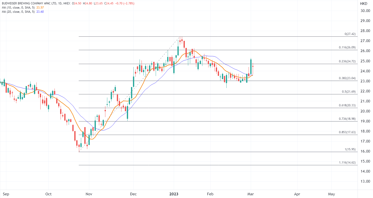 ATFX港股:百威亚太业绩大逊预期,但啤酒股有三大利好可寻 ATFX港股:随着消费场景持续修复,近期啤酒股有不少涨势跟进,昨日啤酒股连续走高,几乎集体上涨,百威亚太(01876.HK)昨日大涨逾5%,今早股价跟随业绩和大市回吐,早段一度跌6%。 百威亚太昨日公布去年业绩,盈利9.13亿美元,按年跌3.9%。正常化盈利亦跌1