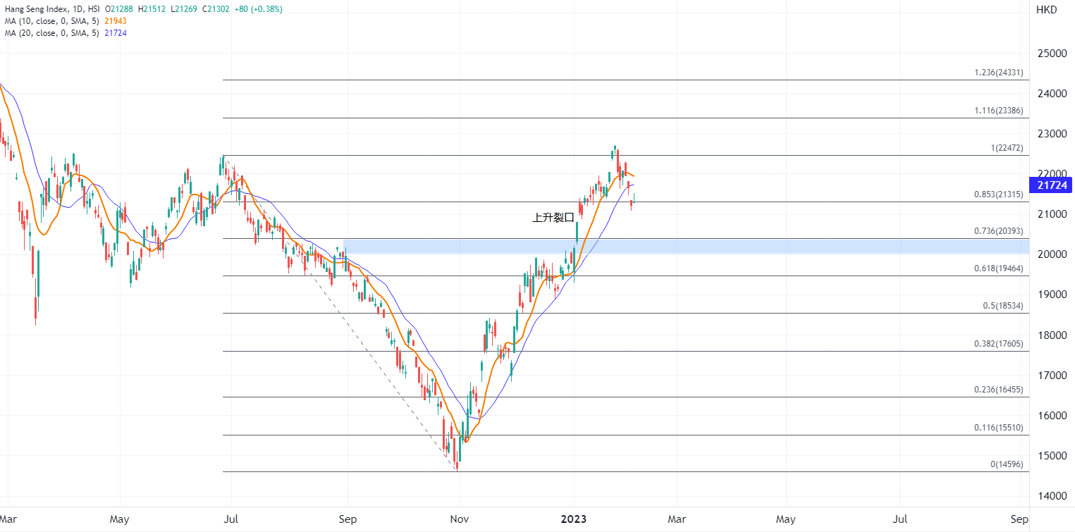 ATFX港股:银行板块集体回调,招商银行七连阴 ATFX港股:1月30日是分水岭,之前的恒生指数势如破竹地上涨,之后的恒生指数摧枯拉朽地下跌。七个交易日,恒生指数累计下跌5.59%,市价再次回到22000点之下。港股市场银行板块总市值9.4万亿,与软件服务并列第一梯队市值板块,在恒生指数由涨转跌之际,银行股走势也出现衰
