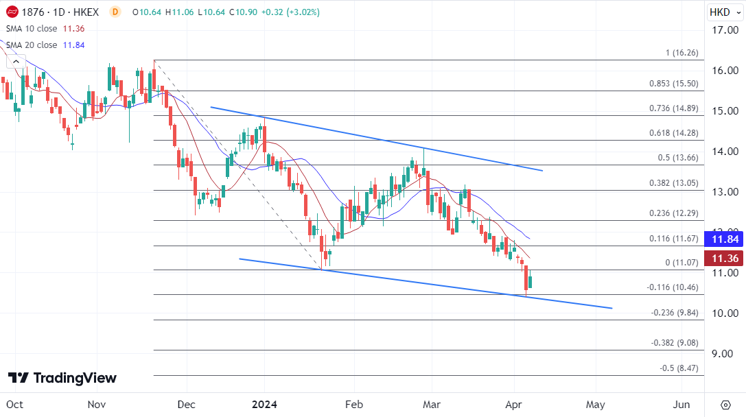 ATFX港股:昨日领跌啤酒股后,百威亚太收复部分失地 ATFX港股:周一港股中,百威亚太(01876)领跌蓝筹。截至收盘,跌5.7%,报10.58港元,成交额2.65亿港元,拖累恒指2点。同板块的华润啤酒(00291)、青岛啤酒(00168)也都遭遇下跌,唯有香港生力啤录得平收。 去年的啤酒行业先扬后抑,下半年不复消费复苏带来的重振,