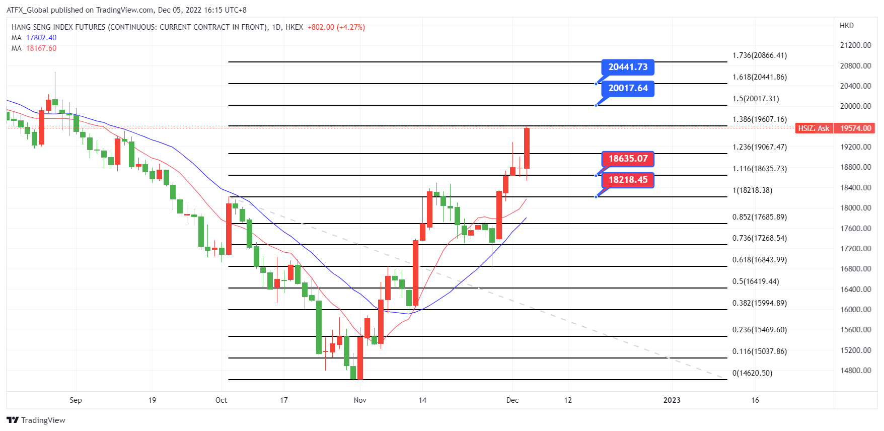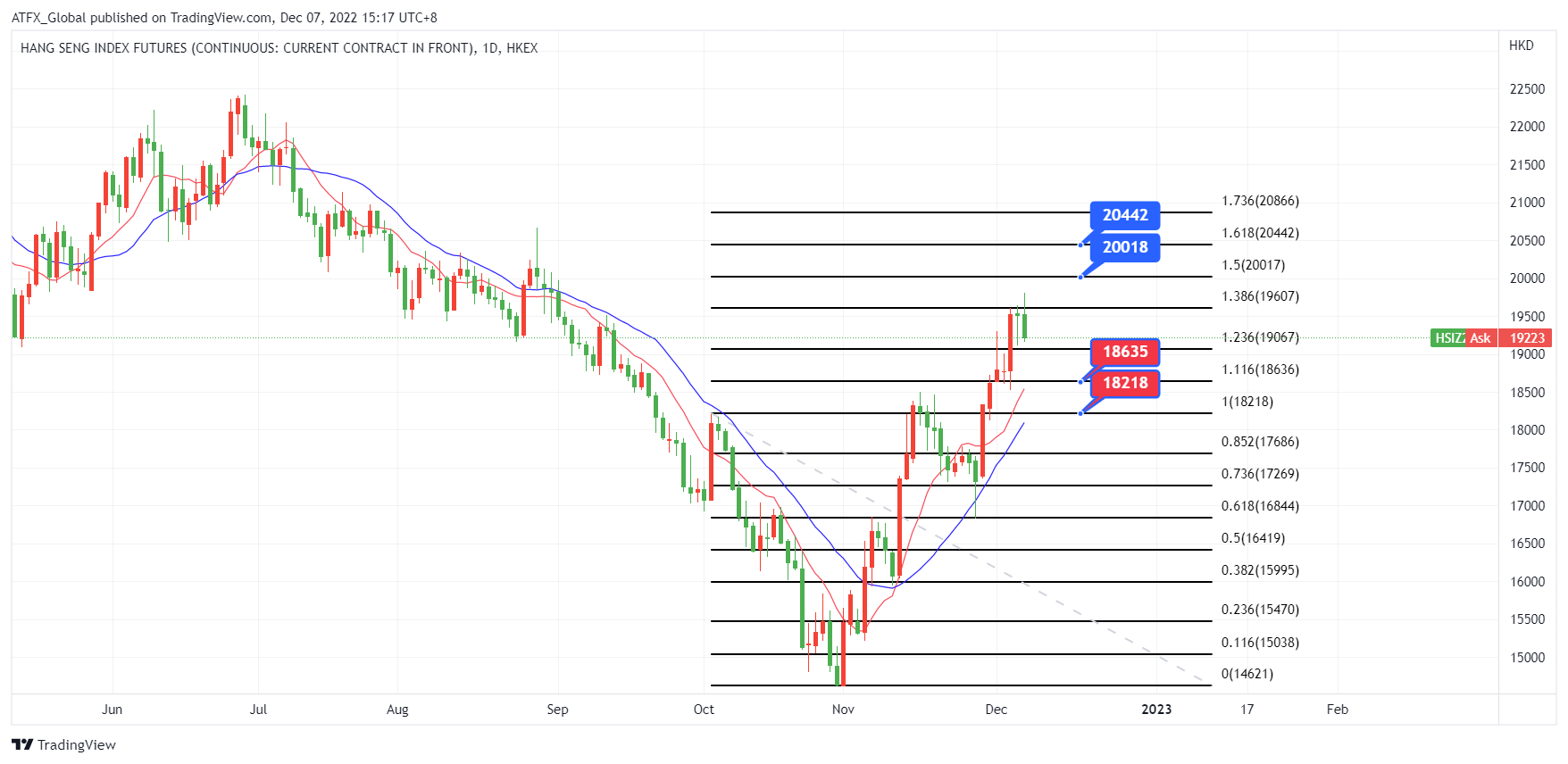 ATFX恒指追踪市场聚焦美国通胀数据及下周美联储议息 ATFX恒指:美国经济衰退忧虑升温和美联储12月加息幅度不明朗使投资者担忧加剧,大多数亚洲股市周三回落。现在的焦点是本周晚些时候公布的美国生产者通胀数据,以及定于下周举行的美联储今年最后一次会议。 另外,中国缩减防疫限制措施的利好消息已在近日开始消化,