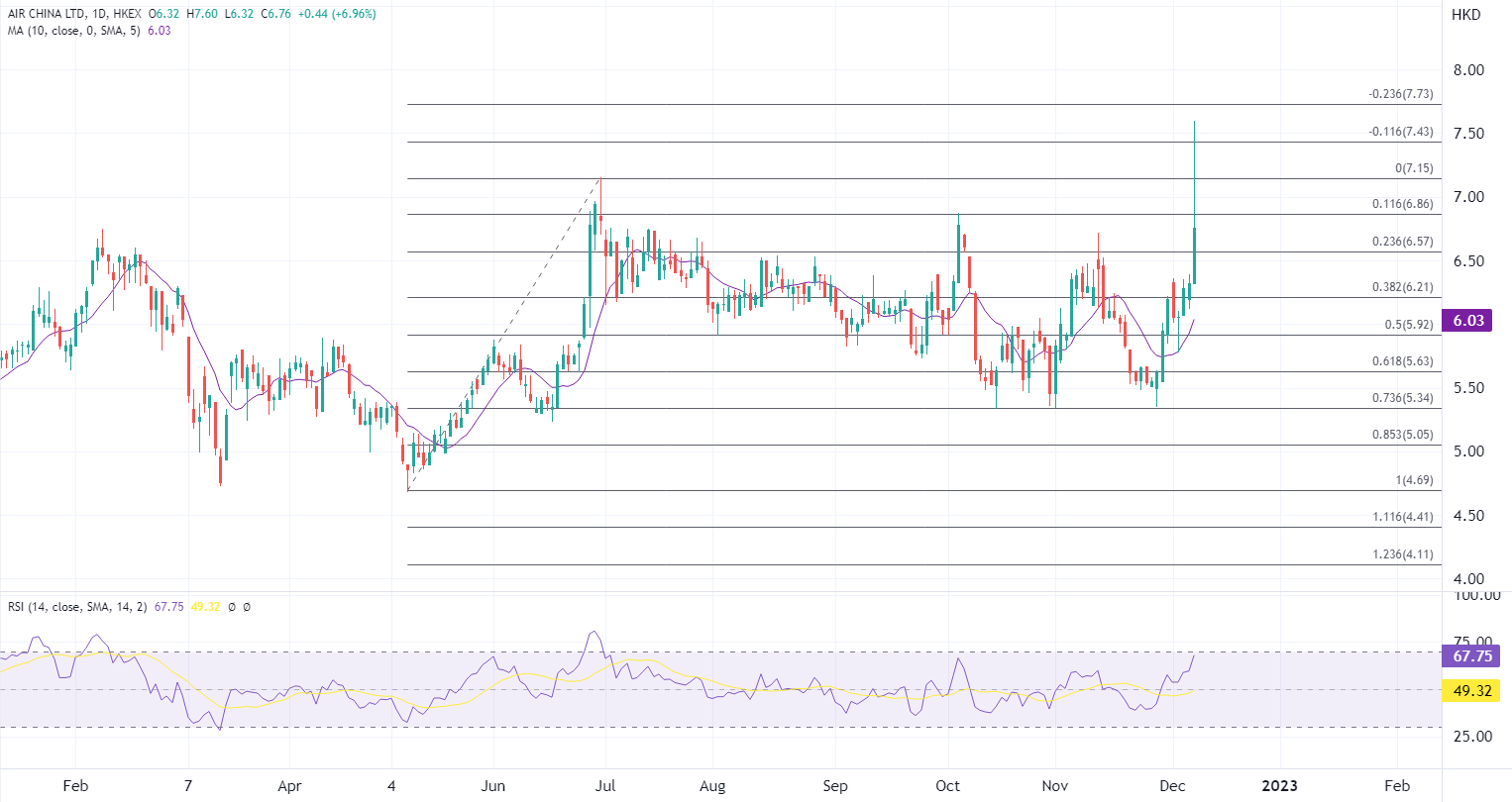 ATFX港股:航空股再获热炒,三大航司盘中涨超10% ATFX港股:中国国务院联防联控机制今日下午3点举行发布会,主题为进一步优化落实疫情防控措施。市场憧憬宣布进一步的防疫政策优化,港股日内再创逾三个月最高。 复常概念股表现抢眼,航空股更是大幅领涨,国内三大航司盘中均涨超一成,中国国航(00753)一度升逾16%