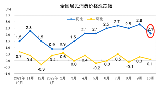 ATFX:中国10月CI增速2.1,UDCH稳定在7.2附近 据国家统计局最新数据,2022年10月份,全国居民消费价格同比上涨2.1%,其中食品价格上涨7.0%,非食品价格上涨1.1%,食品中,猪肉价格上涨9.4%,是涨幅最大的品种。国际公认的温和通胀标准为2%,中国1-10月CI同比增速刚好为2%,表明国内物价表现非常稳定、健康。 ▲A