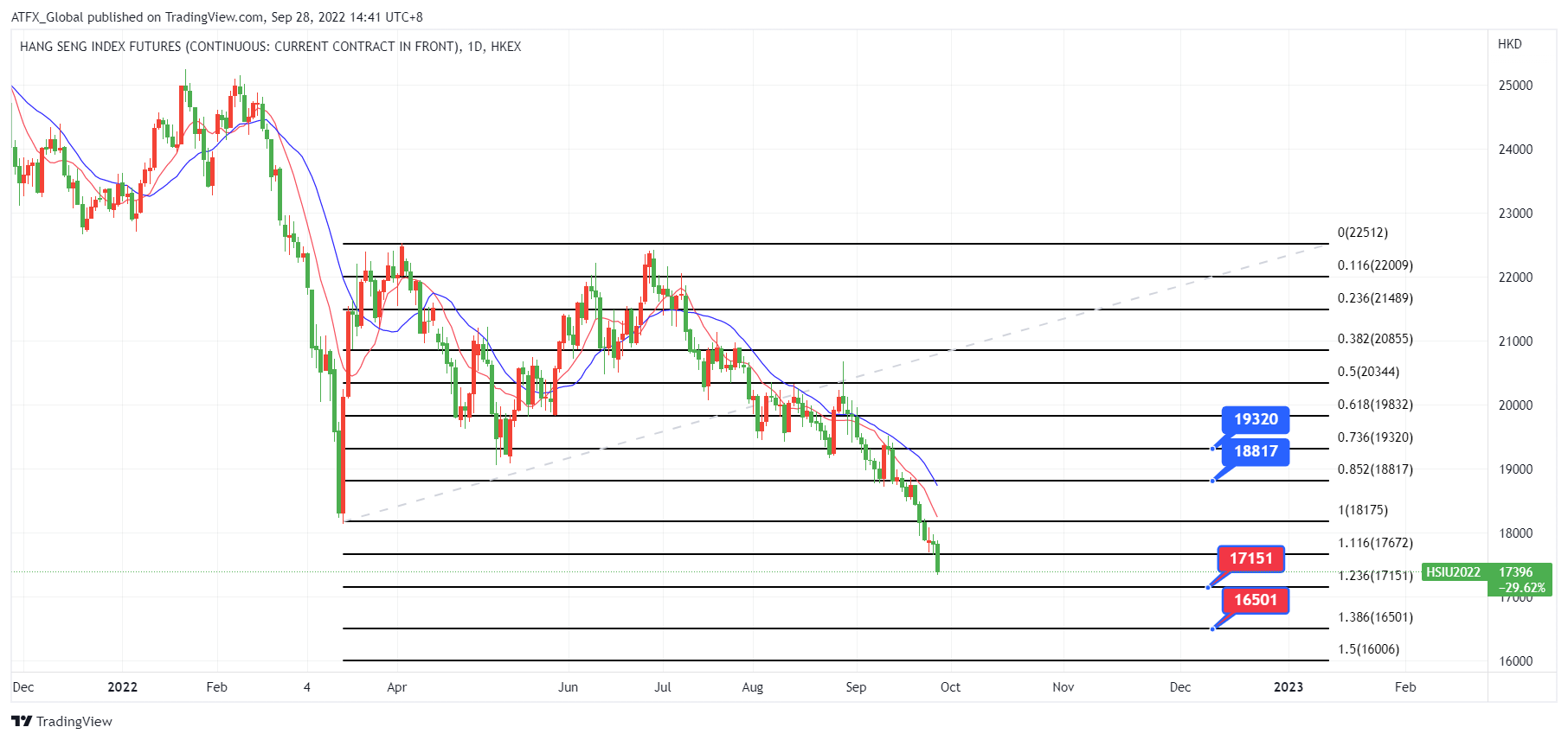 ATFX恒指追迹经济衰退忧虑不减恒指挫逾500点跌幅2.8% ATFX恒指:由于美联储多名官员连日释放一系列鹰派言论以及对中国经济的担忧加深,这双重压力使港股投资情绪低迷。周三恒生指数开盘先2%,辗转上落后午市走势再次向下跌曾逾2.8%,恒生科技指数逾2%是主导恒生指数下跌的主要股份部份。年初至今香港恒生指数已累跌近26%