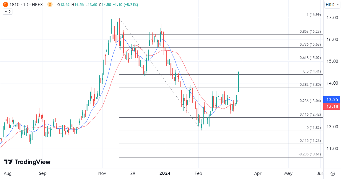 ATFX港股:小米汽车官宣发布时间,小米股价在期待中拉升 ATFX:小米集团(01810)旗下小米汽车U7将于本月28日正式上市,小米股价今早高开高走,盘中涨超近8%,为表现最佳的蓝筹。 小米在三年之约之际,雷军在微博上官宣:3月28日,小米U7正式发布。小米汽车官方微博称,上市即交付,交付即上量。 从官宣后小米